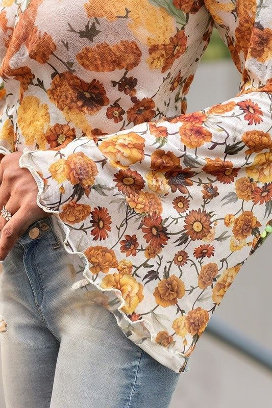 1 - NEW! Boho Bell Sleeve Blouse with Floral Print