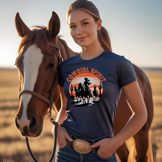 Cowgirl Spirit Horse T-Shirt Western Top - Heather Navy